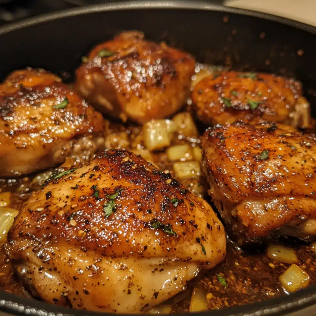 - Bake Chicken: Roast the thighs at 425°F (220°C) for 30–35 minutes until skin is deep golden brown and internal temperature is 165°F.