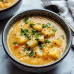 - Ladle the hot, creamy vegetarian potato soup into bowls.