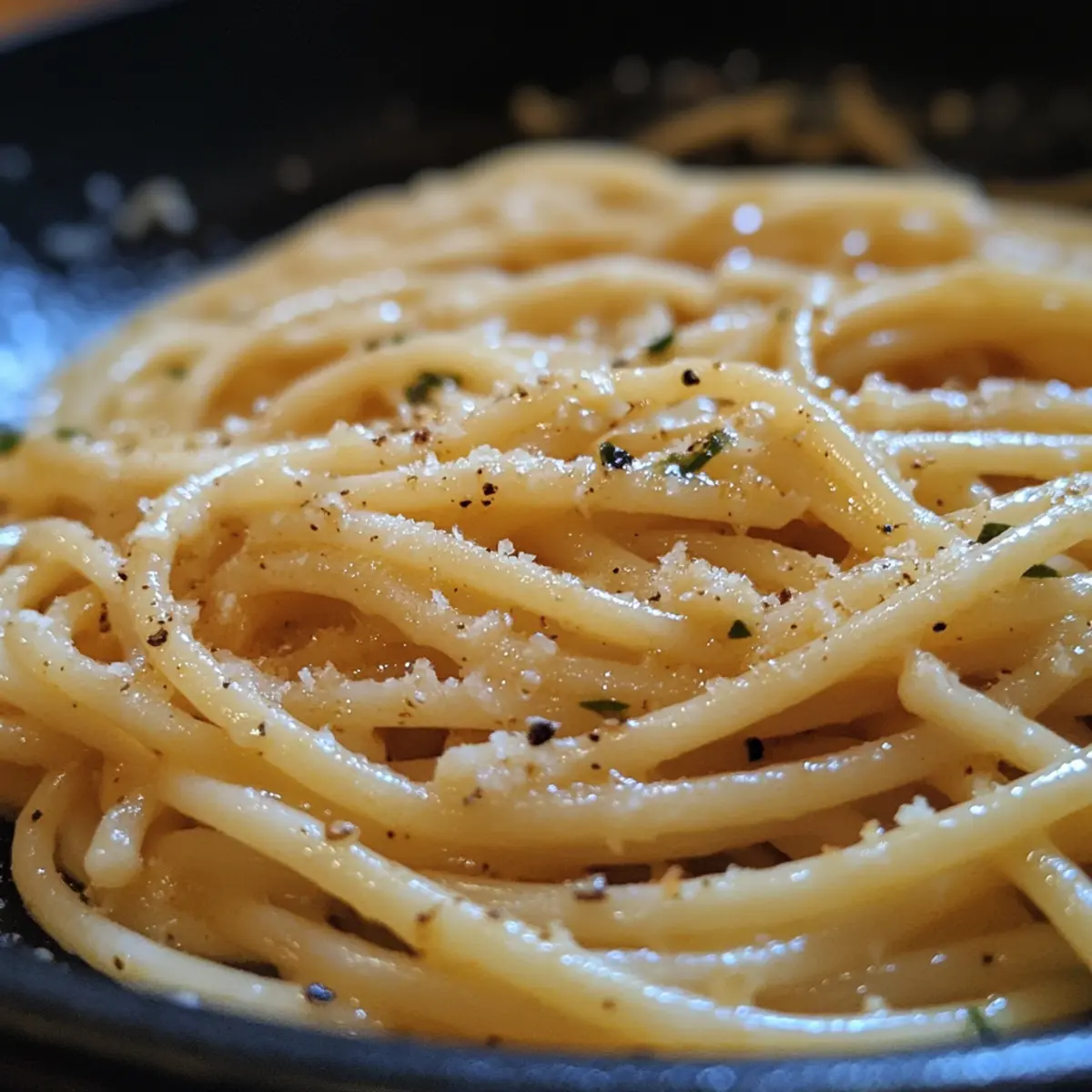- Toss Pasta: Drain pasta, reserving about ¼ cup cooking water. Transfer noodles to the skillet and toss vigorously, coating each strand in the glossy garlic butter sauce for 30 seconds.