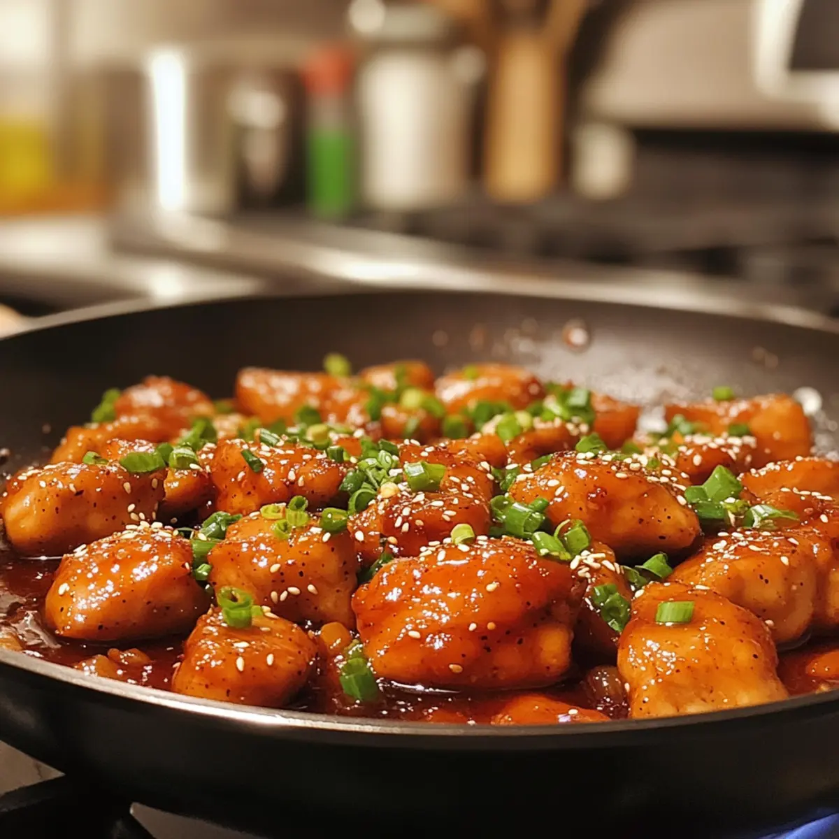 - Rest & garnish: Remove chicken from skillet and let rest 2 minutes for juices to redistribute. Sprinkle with sesame seeds and sliced green onions for a pop of flavor and color.