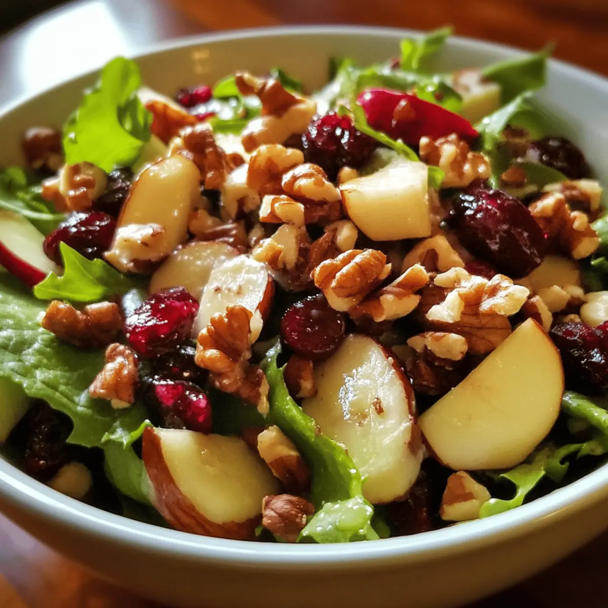 - Assemble Salad: Add dried cranberries, toasted walnuts, apple slices, and onions to greens; drizzle dressing and gently toss to coat every leaf evenly.