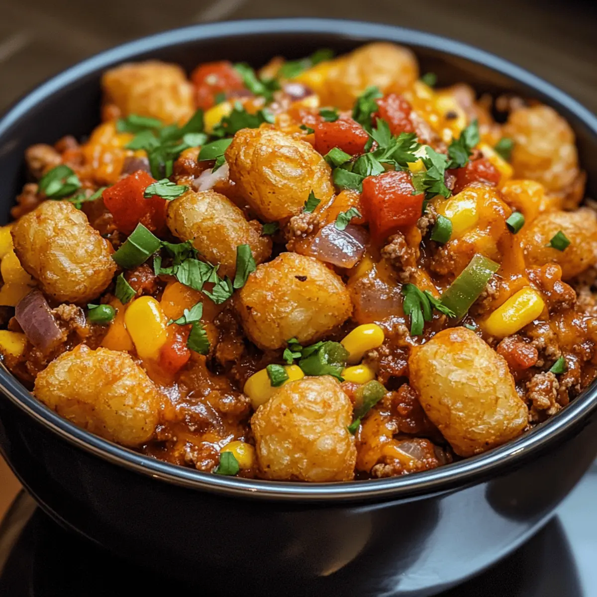 Crunchy Topping: Sprinkle crushed tortilla chips over the tater tots just before serving to add a delightful crunch and extra flavor.