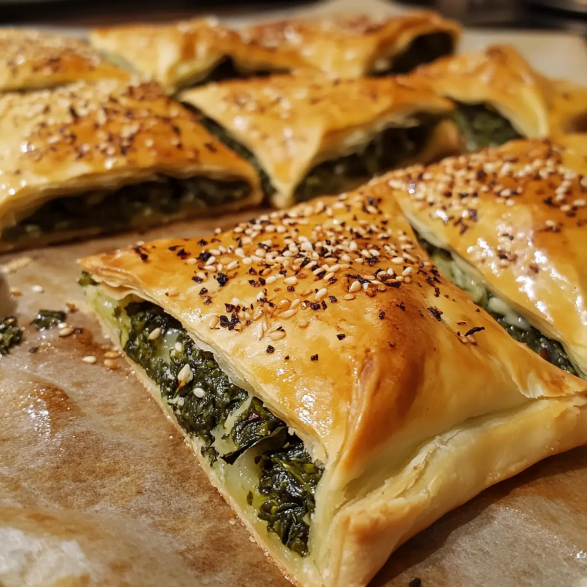 Easy Greek Spinach Pie Triangles with Crispy, Golden Flakes