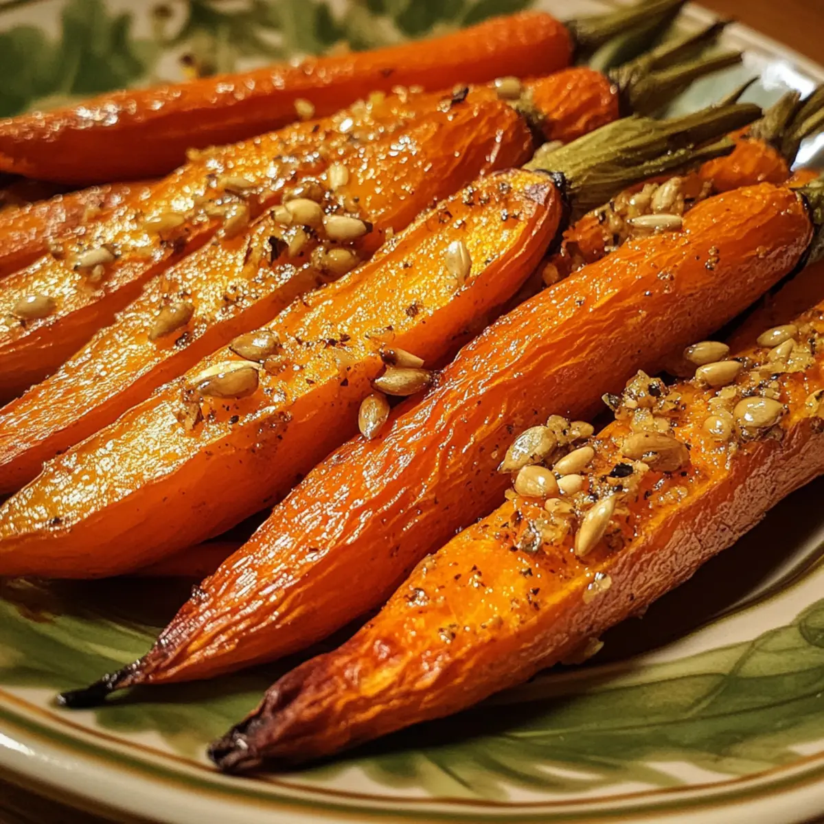 Garnish & Serve: Transfer roasted carrots to a serving dish and sprinkle with toasted seeds. Serve warm for a cozy, crunchy side that pairs beautifully with your favorite main dishes.