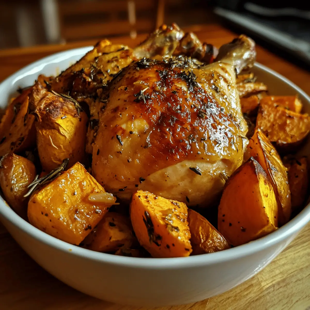 Nutty Crunch: Finish the dish with a sprinkle of toasted nuts like pecans or almonds for an unexpected crunch that complements the chicken and sweet potatoes wonderfully.