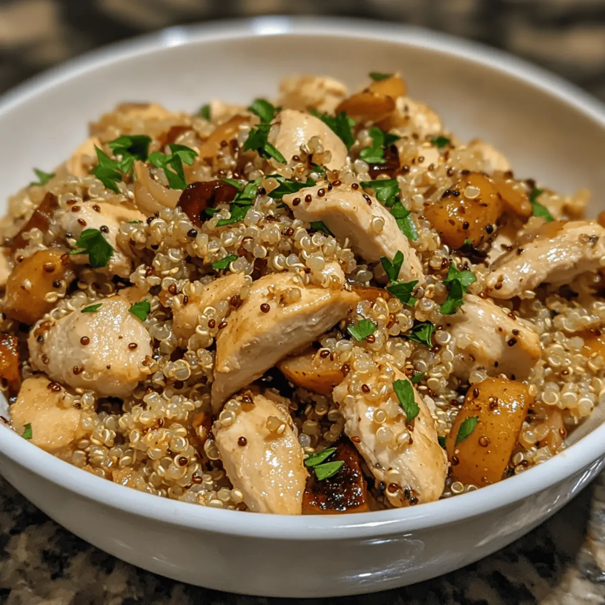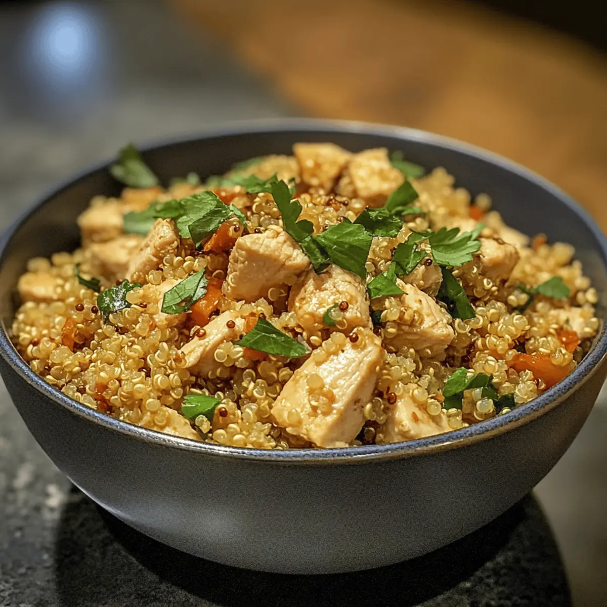 Store leftovers in an airtight container in the refrigerator for up to 3 days. Make sure to cool it to room temperature before sealing to avoid condensation, which can affect texture. When reheating, add a splash of water and warm gently to keep the quinoa fluffy and the chicken moist.