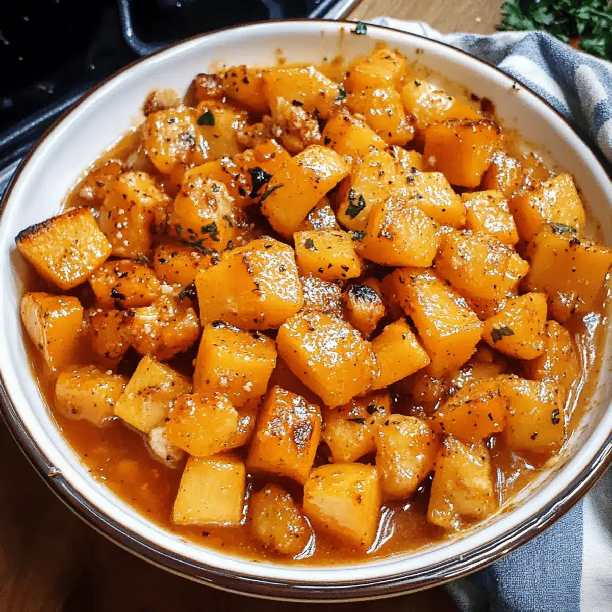 - Glaze & Caramelize: Remove the pan, drizzle glaze over squash, toss gently to coat. Return to oven 5 more minutes until sticky and beautifully caramelized.