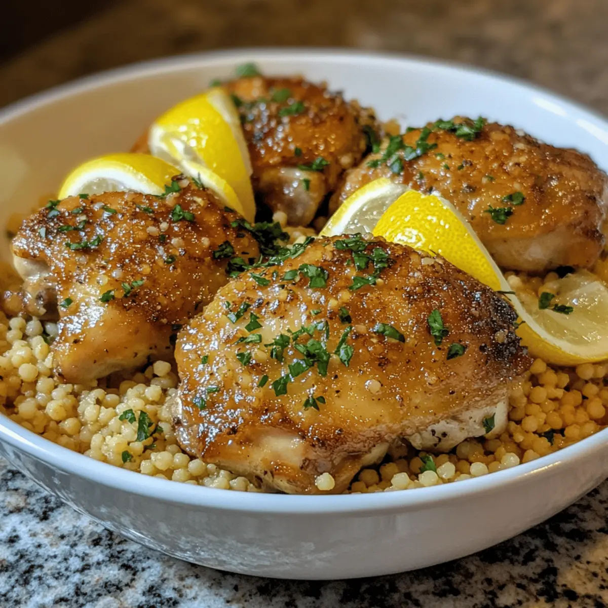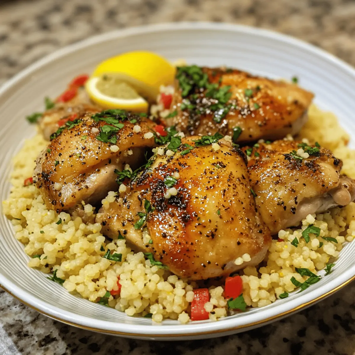 Bold Flavor Fusion: This recipe combines zesty lemon and fragrant herbs for a refreshing, vibrant taste. Effortless Cooking: Minimal ingredients and simple steps make it perfect for busy weeknights. Juicy & Crispy: Tender chicken thighs with a golden, crispy skin every time. Fluffy Couscous: Light, fluffy couscous soaks up the delightful lemony juices. Versatile & Crowd-Pleasing: Ideal for family dinners or impressing friends with Mediterranean flair.