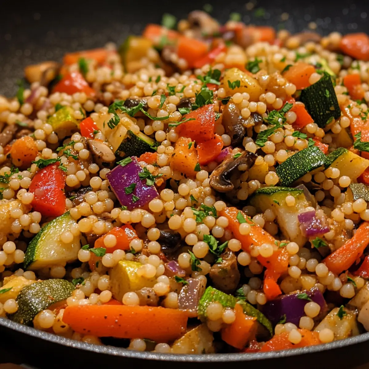 - Combine skillet: In the veggie skillet, fold in the cooked pearl couscous, stirring gently to combine. Cook an additional 1–2 minutes until flavors meld and mixture is heated through.