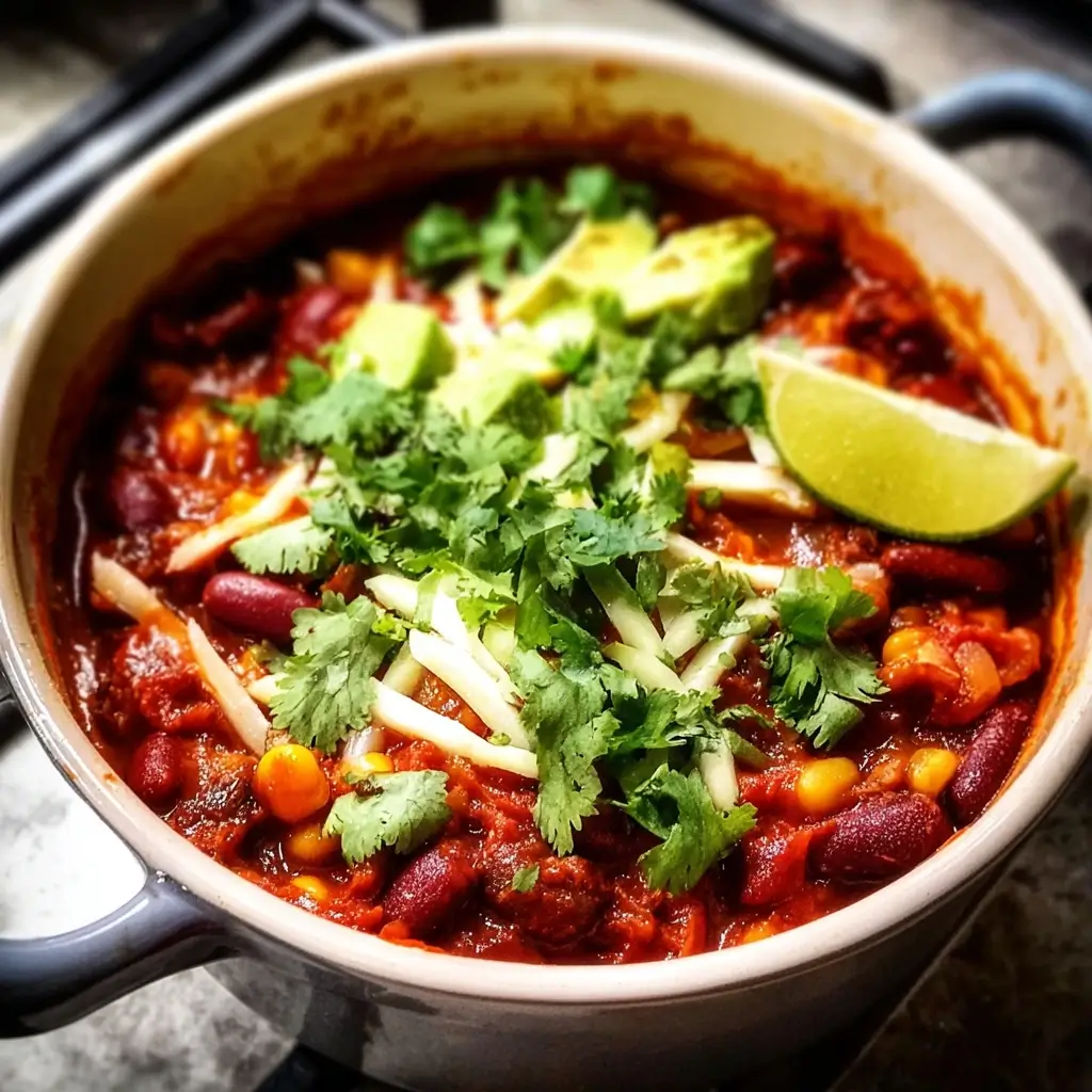 Yes, the core chili recipe is 100% vegan as written. It contains no meat, dairy, or animal byproducts. To keep the entire meal vegan, simply be mindful of your toppings. Use dairy-free sour cream (cashew or tofu-based), vegan shredded cheese, and ensure your cornbread or other sides are prepared without dairy or eggs.