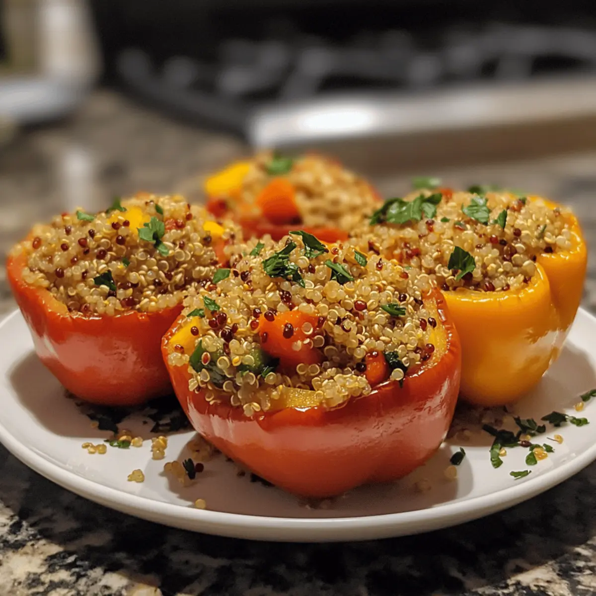 These Quinoa Stuffed Peppers are a fantastic choice for meal prep, saving you precious time during busy weekdays! You can prepare the filling (quinoa, sautéed veggies, and seasonings) up to 3 days in advance and store it in an airtight container in the refrigerator. To maintain quality, refrigerate the uncooked stuffed peppers separately. When you’re ready to serve, simply stuff the peppers and bake them at 375°F (190°C) for about 25-30 minutes until heated through and the peppers are tender. With this strategy, you’ll enjoy a delicious homemade meal that feels effortless, perfect for those nights when you need something wholesome on the table fast!