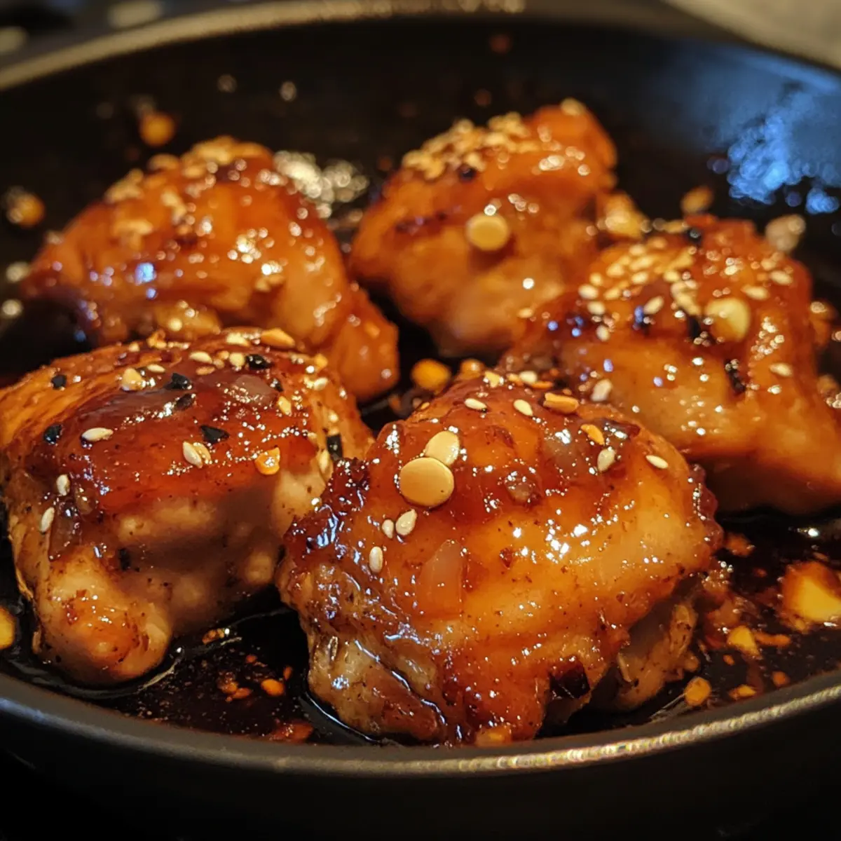 - Return chicken to the pan, spooning the bubbling glaze over each thigh. Cook 2–3 more minutes until the sauce clings.
