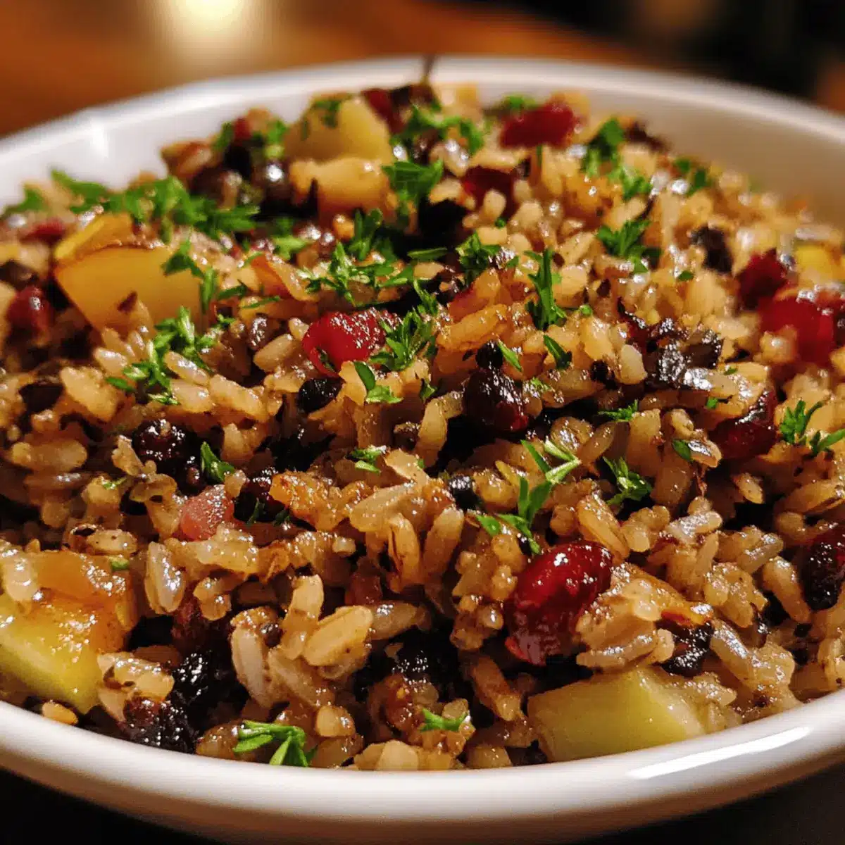 Effortless Elegance: This dish combines simple ingredients into a sophisticated side that impresses without stress. Bursting Flavors: Tart cranberries and toasted nuts add vibrant bursts of taste and texture. Nutritious and Wholesome: Packed with fiber-rich wild rice and fresh fruits, it’s a nourishing choice. Festive Appeal: The colorful presentation brightens up any Thanksgiving plate. Versatile and Crowd-Pleasing: Perfect alongside turkey or as a standalone vegetarian option that everyone will love.