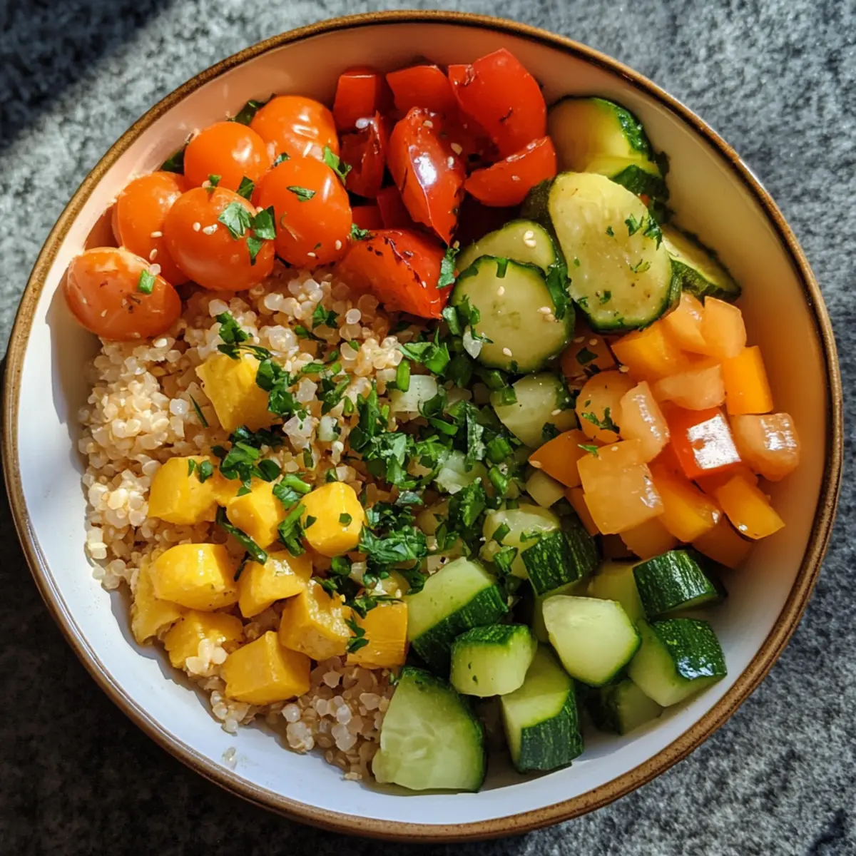 - Cucumber – adds a crisp, refreshing bite and lightens the bowl.
