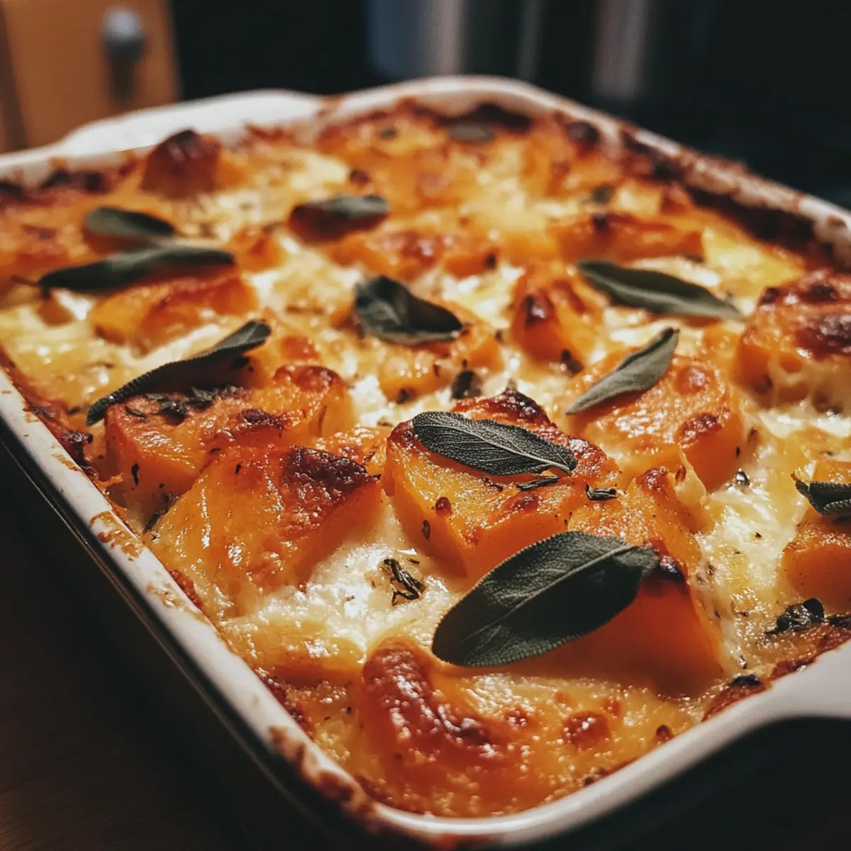 Rest & Garnish: Let the bake cool 5 minutes to set; sprinkle extra sage leaves or Parmesan before serving for an elegant, herbaceous finish.