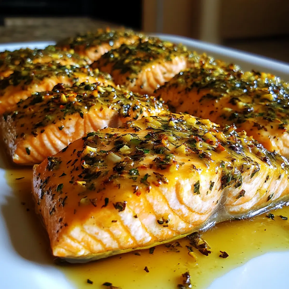 - Brush the marinade across the top of each salmon fillet on your prepared pan, coating thoroughly so that every inch is ready to hold the herb crust securely while baking.