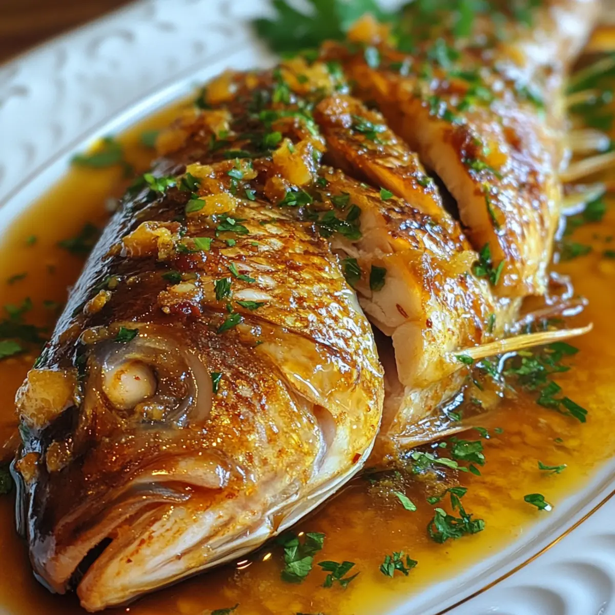 Vegan Option: Replace the whole snapper with thick slices of tofu, marinating and baking it to absorb all the vibrant flavors, creating a satisfying vegetarian alternative.