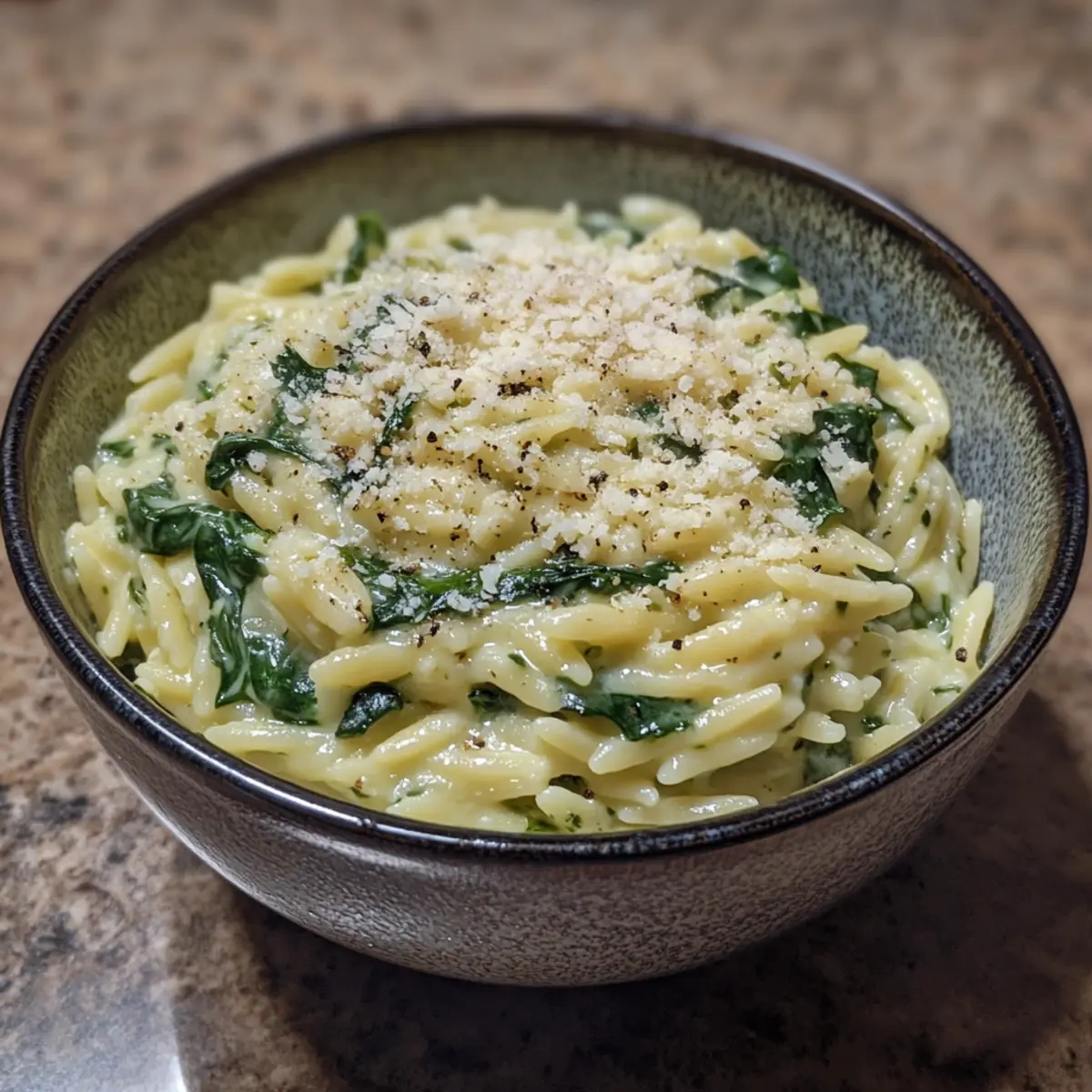 - Return cooked orzo to the skillet, tossing gently with the creamy spinach sauce. Add reserved pasta water as needed.
